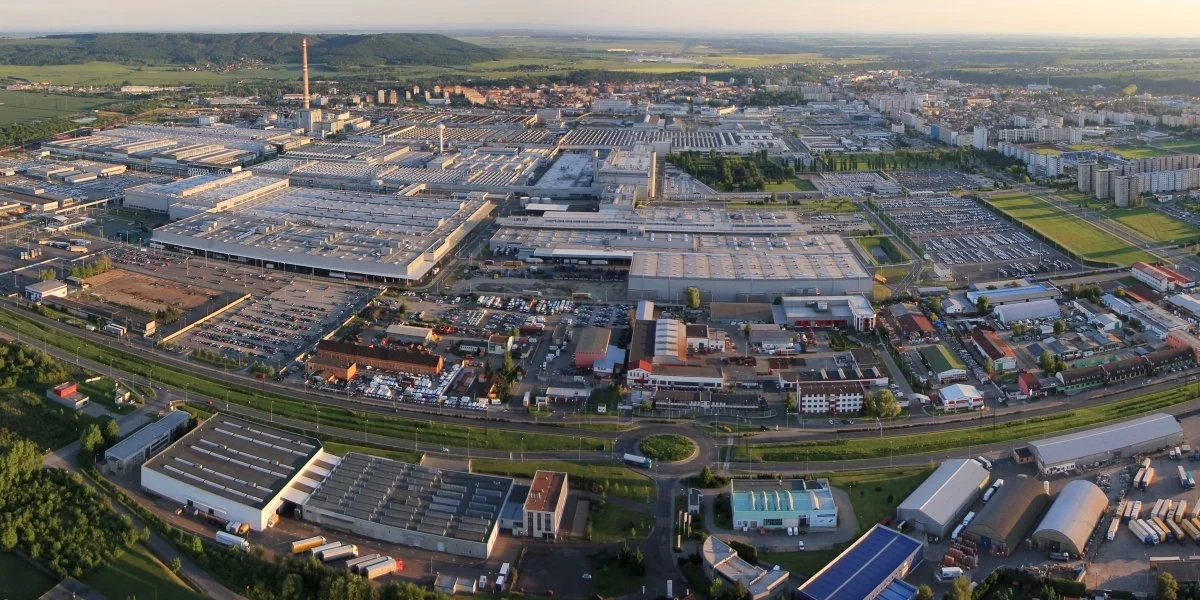 Bildet viser Skodas fabrikk i Tsjekkia, en bilprodusent det faktisk ikke går så aller verst med. (Foto: Zdeněk Fiedler, Creative Commons)